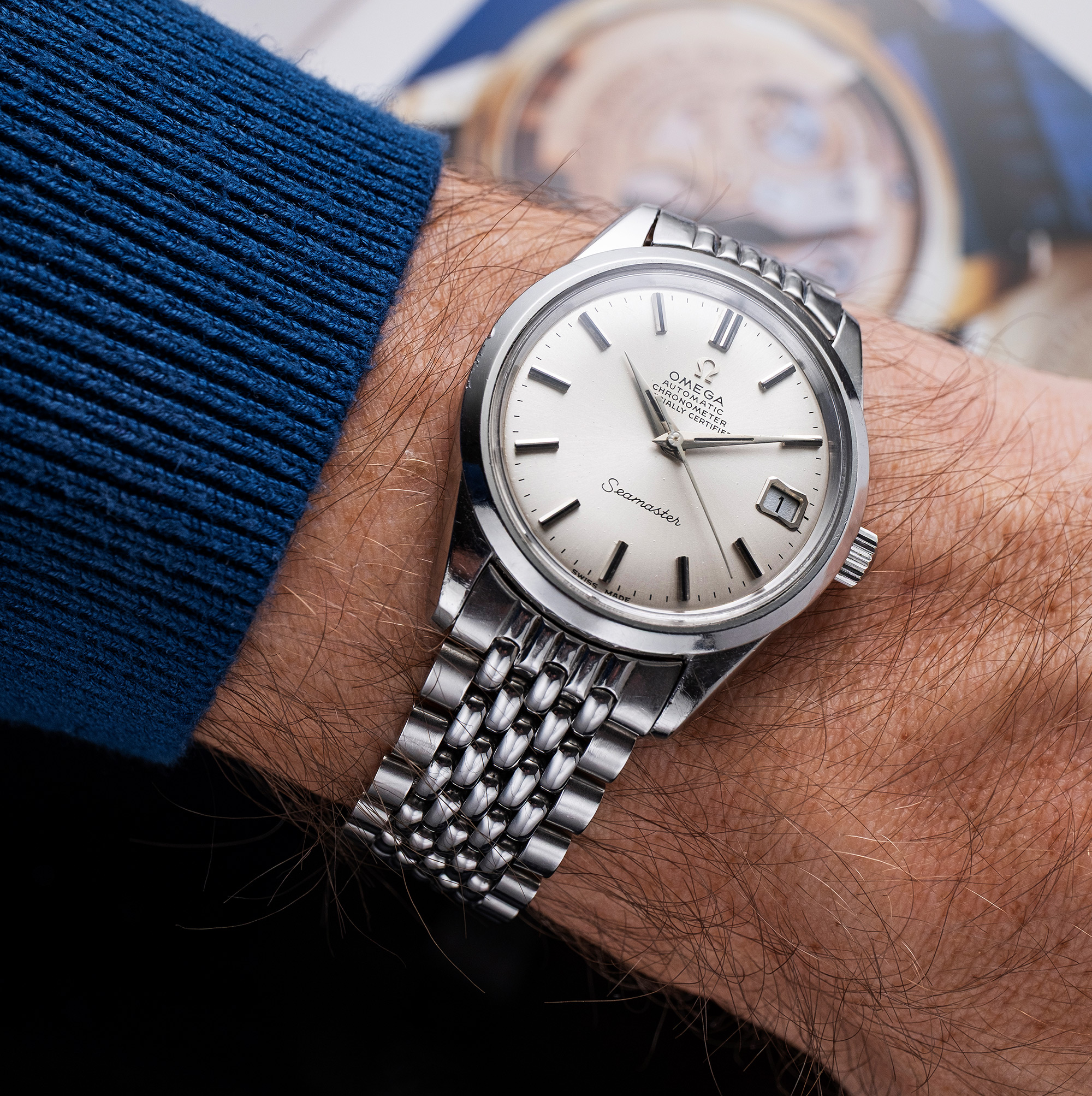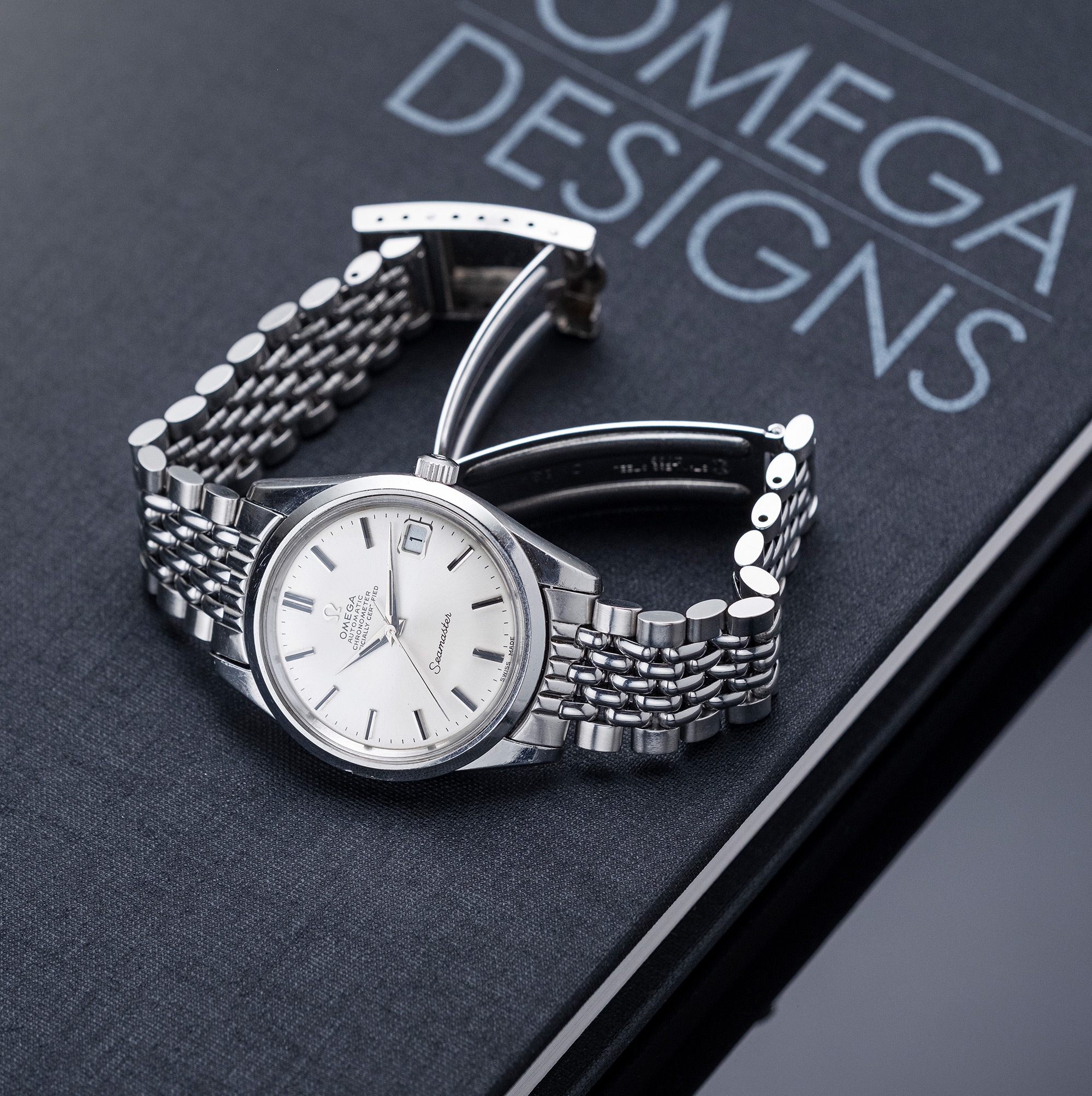 Many Seamaster 168.024 watches were delivered on Omega's beads-of-rice bracelet no. 1036, another element often attributed to Gerald Genta's early design language. Like the case, the bracelet reflects a careful balance of comfort and visual refinement: fluid articulation on the wrist, a dressy appearance at a glance, and enough structural integrity to suit a daily-wear sports watch.